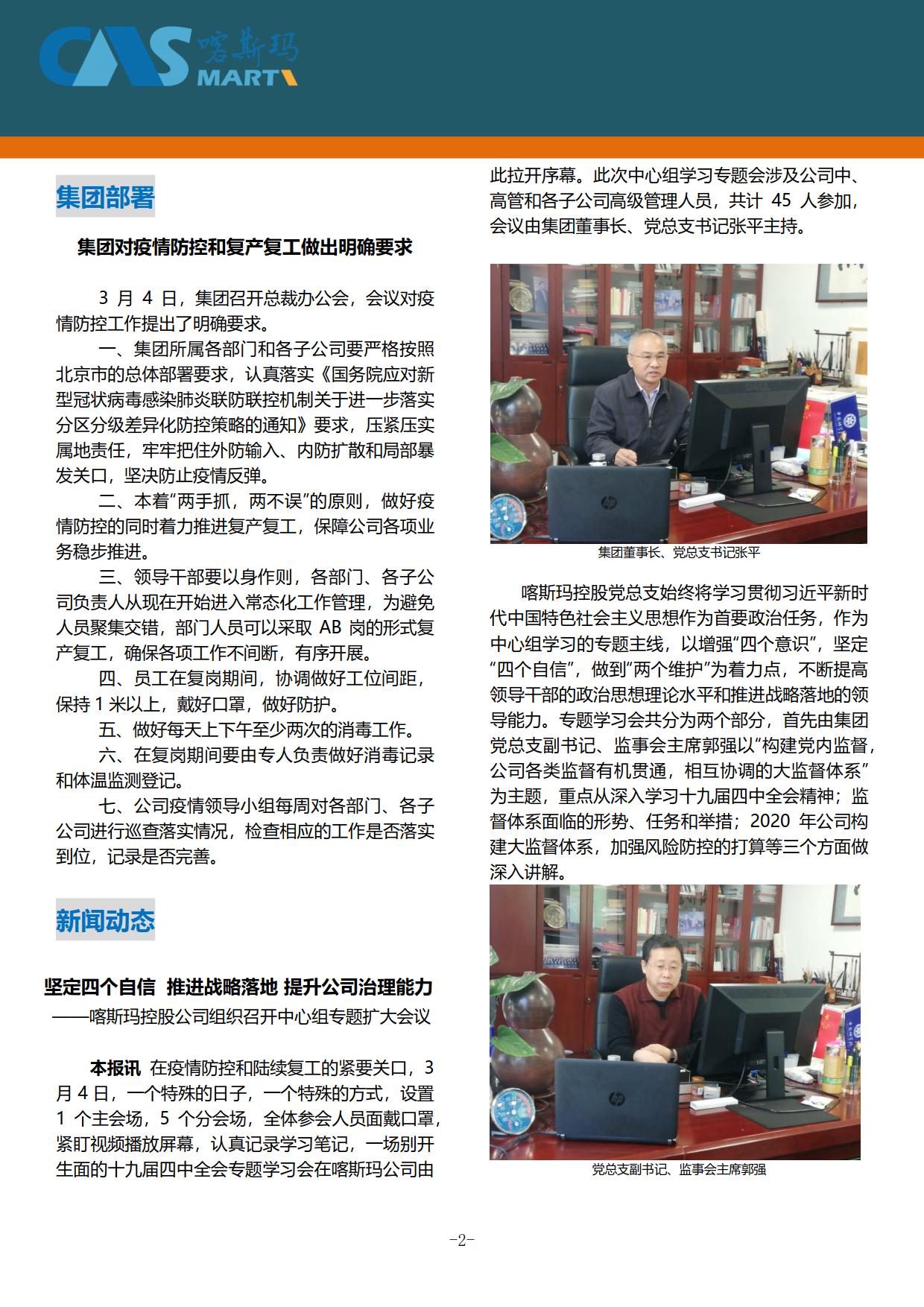 喀斯瑪控股有限公司戰(zhàn)“疫”周刊2020005期